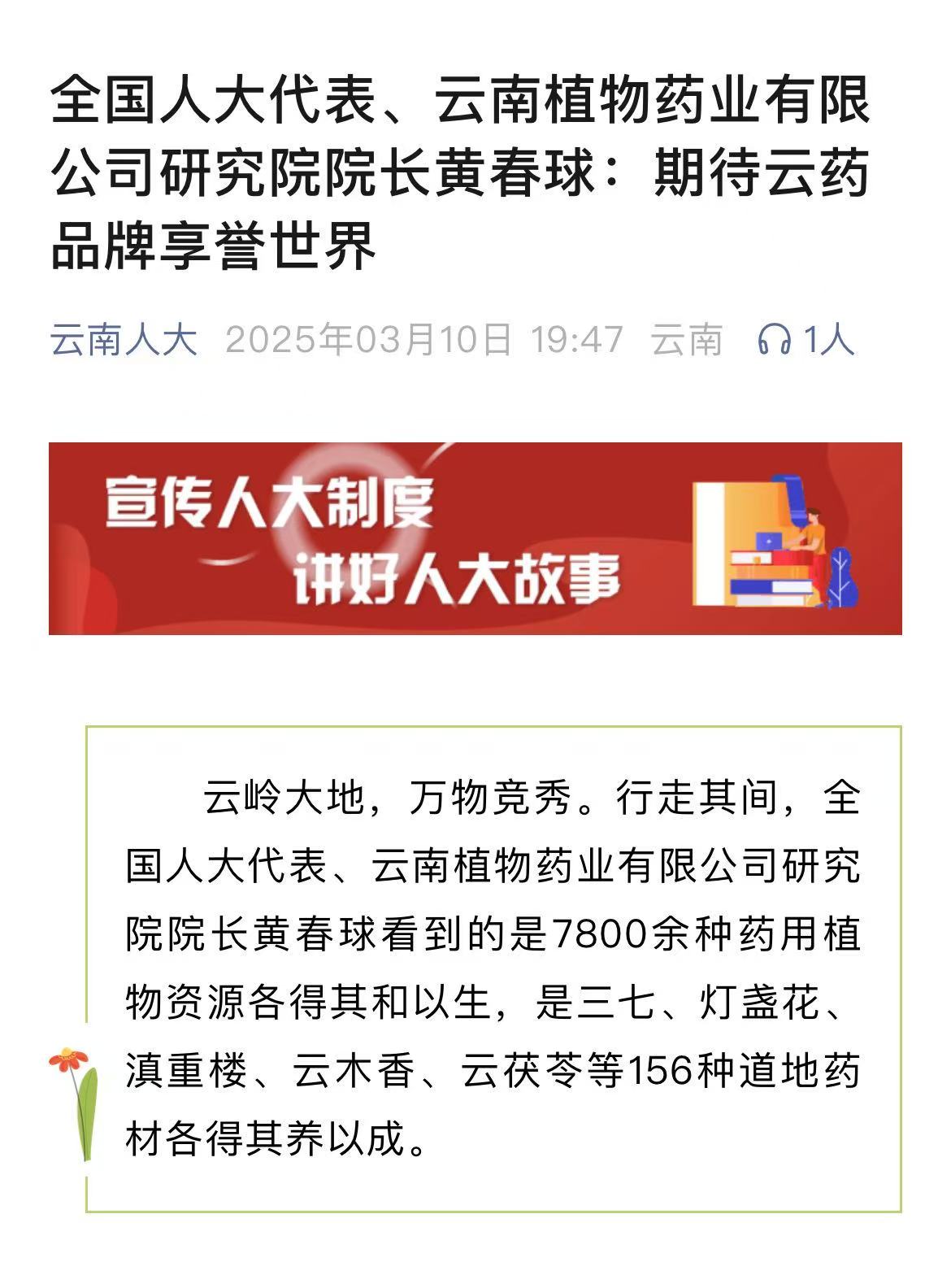 3月11日下午,第十四屆全國(guó)人民代表大會(huì)第三次會(huì)議在北京人民大會(huì)堂閉幕。3月12日,圓滿完成會(huì)議各項(xiàng)議程的全國(guó)人大代表、云南植物藥業(yè)有限公司研究院院長(zhǎng)黃春球,從北京返回昆明。