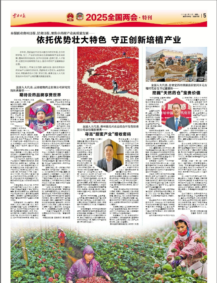 大會(huì)期間,黃春球代表依法履職盡責(zé),認(rèn)真審議審查各項(xiàng)報(bào)告、草案。同時(shí)聚焦人民、產(chǎn)業(yè)和國(guó)家關(guān)注的痛點(diǎn)、堵點(diǎn)問(wèn)題,認(rèn)真建言獻(xiàn)策,向大會(huì)提交和提出了11份建議及15個(gè)重要問(wèn)題。重點(diǎn)關(guān)注了民族藥創(chuàng)新發(fā)展、罕見(jiàn)病相關(guān)制度機(jī)制的完善、新業(yè)態(tài)的培育發(fā)展、邊民互市貿(mào)易的規(guī)范化管理、國(guó)家重要物資的安全儲(chǔ)備以及非遺旅游的規(guī)范化推進(jìn)等方面。她建議國(guó)家和政府重點(diǎn)支持云南生物醫(yī)藥大健康領(lǐng)域的新藥研發(fā)項(xiàng)目和科研平臺(tái)建設(shè),推動(dòng)重點(diǎn)農(nóng)產(chǎn)品的創(chuàng)新和產(chǎn)業(yè)高質(zhì)量發(fā)展,并因地制宜地培育新質(zhì)生產(chǎn)力。
