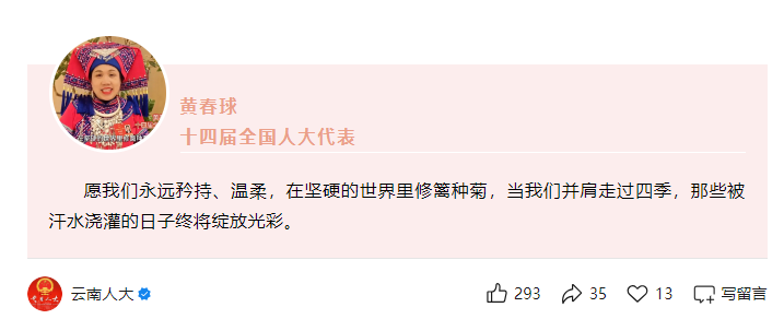 2025年是“十四五”規(guī)劃的收官之年,也是進(jìn)一步全面深化改革的重要一年。黃春球代表示,將深入學(xué)習(xí)貫徹習(xí)近平總書(shū)記重要講話精神,第一時(shí)間宣講好、貫徹好全國(guó)兩會(huì)精神,把好政策、好消息及時(shí)傳遞給基層一線干部群眾。同時(shí)也將依法履行代表職責(zé),充分發(fā)揮代表作用,持續(xù)為中國(guó)式現(xiàn)代化在云南的實(shí)踐探索積極建言獻(xiàn)策,積極為云南民眾發(fā)聲,為推動(dòng)云南產(chǎn)業(yè)高質(zhì)量跨越式發(fā)展發(fā)光發(fā)熱。